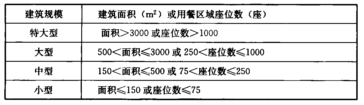 注:食堂按服务的人数划分规模。食堂服务的人数指就餐时段内食堂供餐的全部就餐者人数。