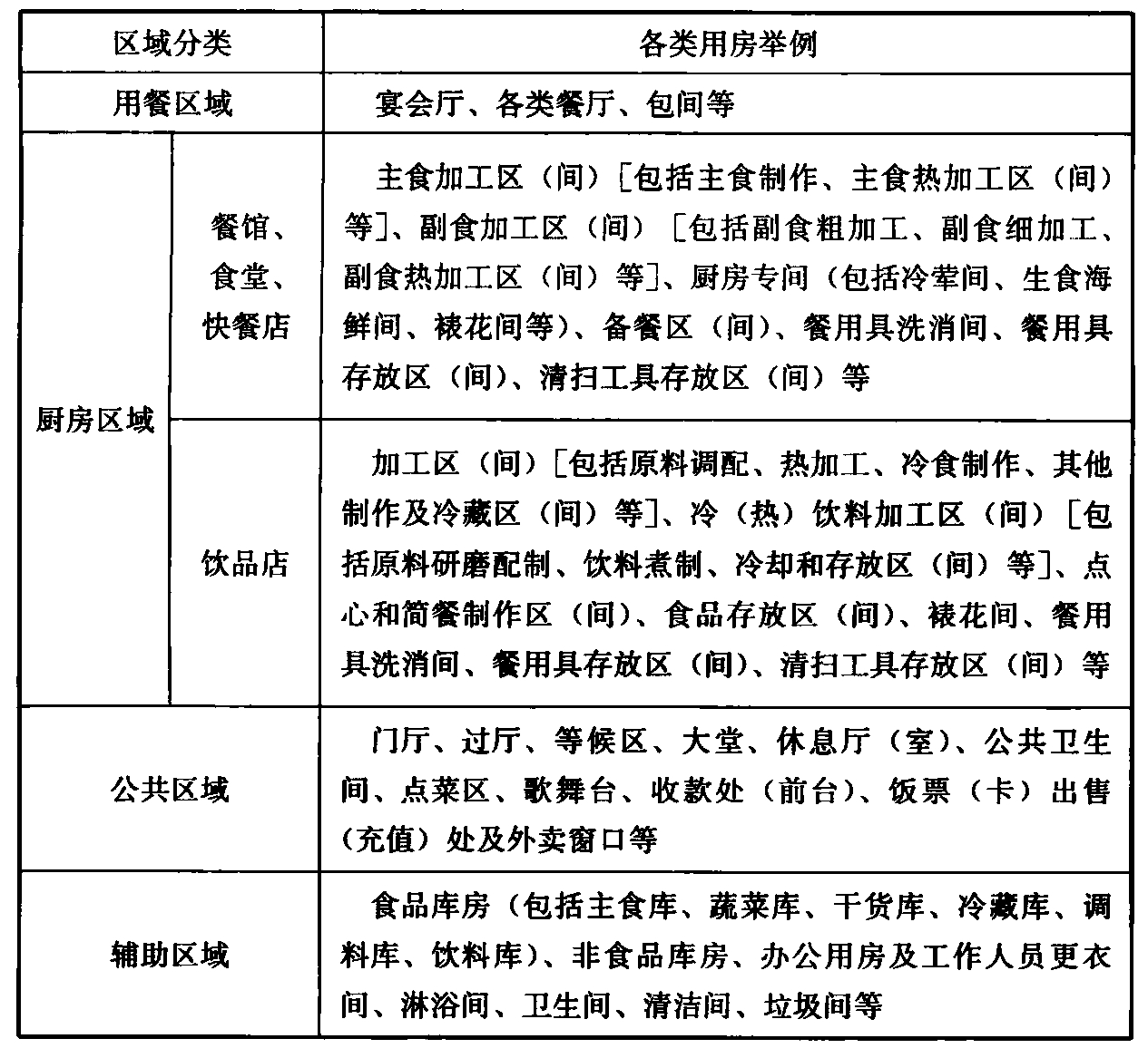 - 副食加工区(间)——包括副食粗加工、副食细加工、副食热加工区(间)及风味餐馆的特殊加工间;