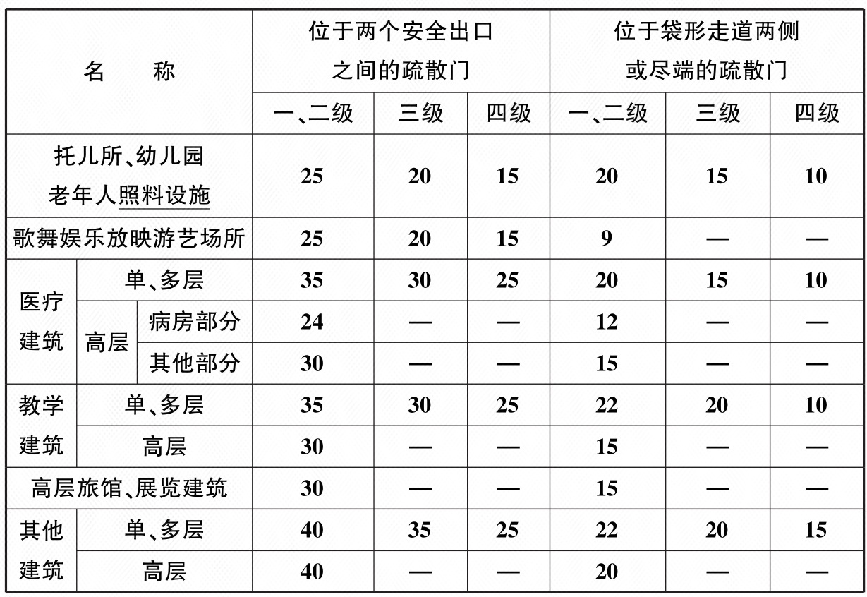 5.5.17 公共建筑的安全疏散距离应符合下列规定:直通疏散走道的房间疏散门至最近安全出口的直线距离不应大于表5.5.17的规定。
